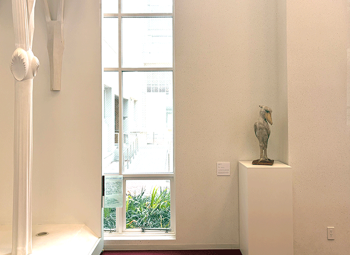 今年の春、TVでハシビロコウという鳥の特集を見て目が釘付けになった。川辺にスッと立ち、じっと動かずに、肺魚が水面に浮かんでくるのを待っている。ものすごい存在感である。彫刻では「心棒」が大事だといわれる。「心棒」とは、「重心の通る線」という意味だけではなく「存在の核」となる大切なものをいう。ハシビロコウが狩りをする姿はビシッと決まっていて、まさに心棒がとおっていた。凄みのあるカッコよさ、とでもいうのだろうか。
