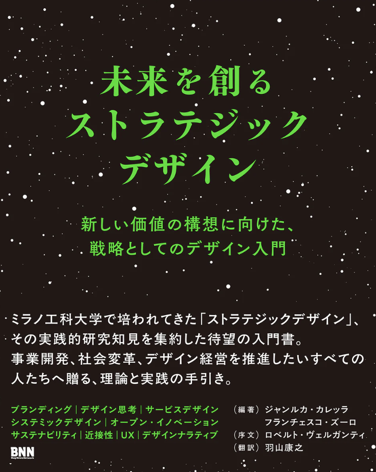 “Strategic (Multiform) Design,” a book that systematically organizes the ideas and practices of strategic design, will be published in Japanese by BNN, Inc. Yasuyuki Hayama, Assistant Professor in the Department of Strategic Design at Kyushu University’s Faculty of Design, was involved as a translator for this Japanese edition, and an additional chapter based on research outcomes has been newly included.