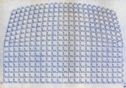 Oguni Dome, structural analysis diagram of roof. Blueprint by Taiyo Kogyo