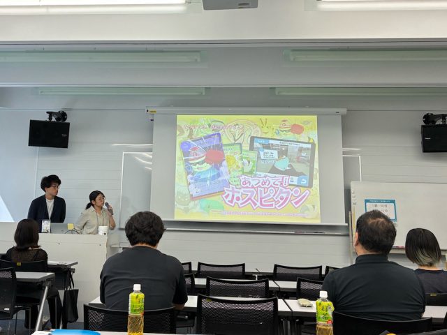 スタジオプロジェクト科目「九州大学病院×デザインプロジェクト」で、九州大学病院小児外科と連携し、入院する子どもの不安を和らげるデザインに取り組みました。実際に病棟を訪れて手術に同行し、患者家族・医療従事者の方々と対話する中で、子どもの「怖い・わからない」という気持ちに寄り添う必要性を感じました。そこから医療器具のキャラクター「ホスピタン」を考案し、そのカードやゲームを制作しました。このデザインは現場の方からも高評価をいただき、大きなやりがいになりました。