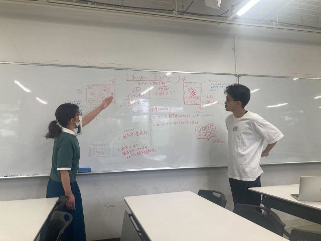 それぞれの修士研究と並行して、授業後もホスピタンの制作を続けています。九州大学病院の方々と協議を重ね、現場検証も見越した実践的なデザインへ発展させている段階です。また、この内容をデザイン学会やコンペなど、学外にも積極的に発信することで、コンペのグランプリを受賞するなど、大きな成果にもつながっています。学内外の方々と協力し、評価や意見をいただくことで、さらに制作に対するモチベーションを高めています。