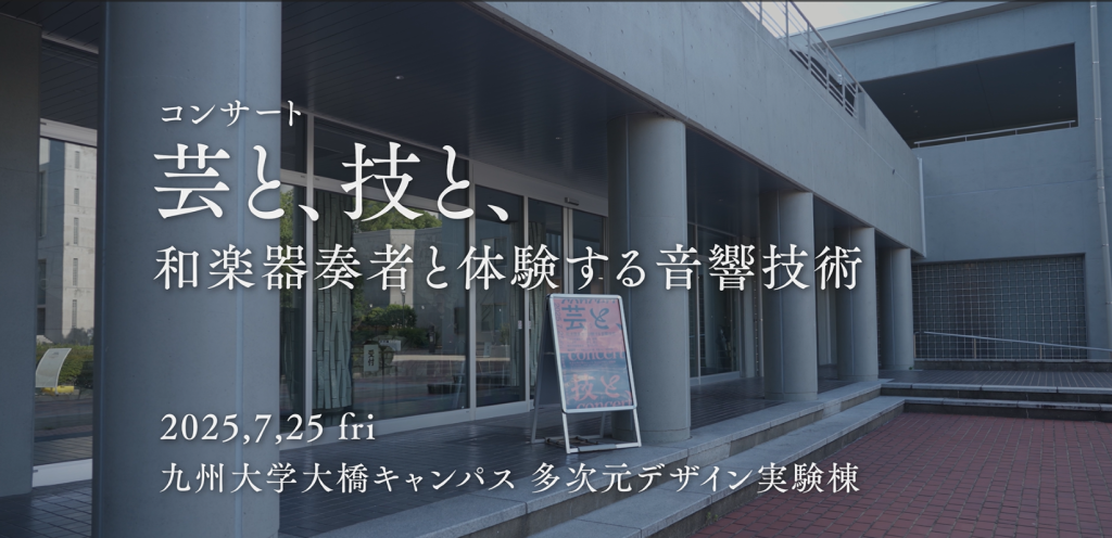 2025年7月25日(金)、大学院芸術工学府スタジオプロジェクト科目「ホールマネジメントエンジニアリングプロジェクト」主催のコンサート「『芸(わざ)と、技(わざ)と、』~和楽器奏者と体験する音響技術~」を実施し、そのダイジェスト動画を芸工公式YouTubeで公開しました。