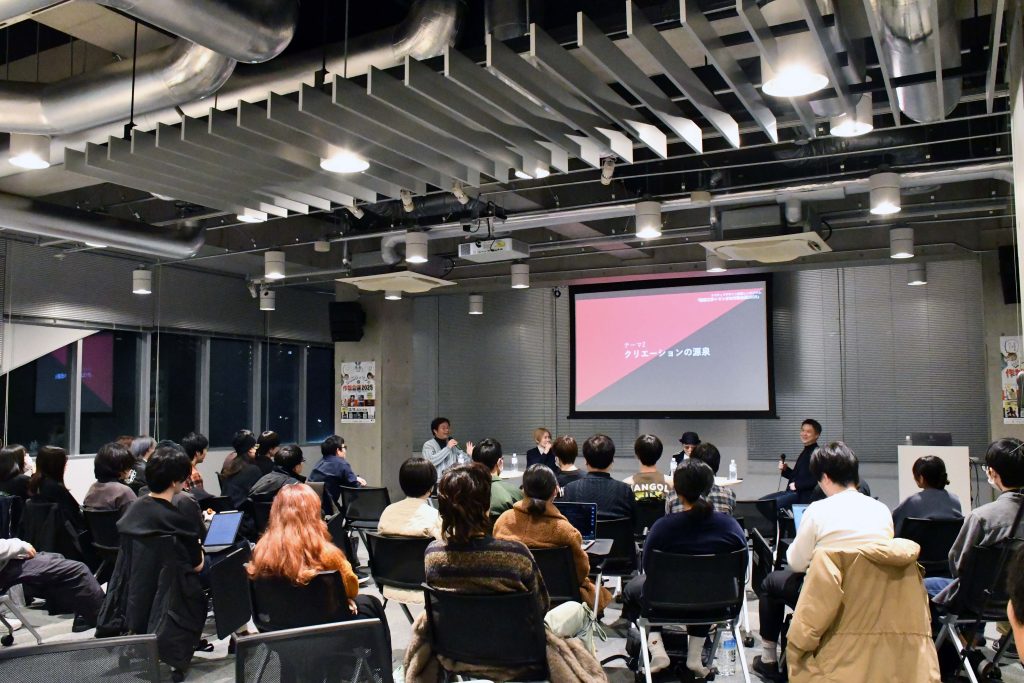 後半のテーマである「クリエーションの源泉はどこから来るのか?」という問いに対しては、制作することを前提とした視点で世の中を見ることで、常に頭が動き続け、クリエイターにとってはすべてがクリエーションの源泉になる、と語られました。また、「締切」があることで描くしかないという状況を作れるため、賞への応募や、1日1ページをSNSに投稿するなど、自ら期日を設けることの重要性も語られました。そのようにして作品の完成まで辿り着いた時、「作品を作っていない人」から「作品を完成させた人」にステップアップできるため、余計なことは考えずに作品を完成させることが大切だ、とも語られました。さらに、作品づくりのポイントとして、読んでもらいたい誰かを決めて、その人に向けて描くことで、作品の方向性が明確になるというアドバイスもありました。