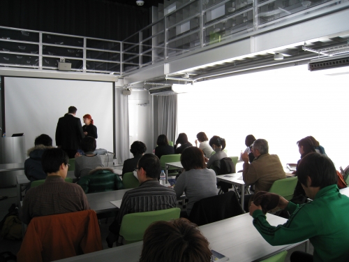ドイツからデザインリサーチの第一人者来学 公開日:2009.03.03 平成21年2月24日(火)~27日(金)、ドイツのケルン国際デザイン大学から、定性的デザインリサーチとジェンダー研究の第一人者ウタ・ブランデス教授と、デザイン理論の専門家ミヒャエル・エルホフ教授を招いて、3つのイベントを開催しました。 添付ファイル 1.『ジェンダー×デザイン』 平成21年2月24日(火)、大橋キャンパス7号館1Fのシアタールームで、6時間にわたり、学生向けのセミナーとワークショップを行いました。 デザインリサーチについてのワークショップは、英語のみで行われましたが、学生はとてもよく課題に取り組み、面白い分析をしたプレゼンテーションを発表しました。 平成21年2月25日(水)、安河内研究院長と懇談をしました。 芸術工学部のデザイン教育の点で大変興味を持たれ、学生の交換留学はもちろん、研究者の形式的な交流ではなく、実質的なプロジェクトを一緒に行いたいとのお話がありました。 研究院長室にて。 右からミヒャエル・エルホフ教授、ウタ・ブランデス教授、安河内研究院長、池田准教授。 2.『デザインリサーチの方法と重要性』 平成21年2月26日(木)、USI大橋サテライトLUNETTEで、デザインに役立つリサーチの手法と理論を、豊富な事例とともに紹介され、一般の方々を含め、たくさんの方々が参加しました。