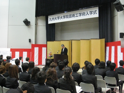 九州大学大学院芸術工学府入学式を開催(2011.4.8) 公開日:2011.04.11 九州大学大学院芸術工学府入学式が、4月8日、大橋キャンパスにて開催されました。大学院修士課程145名、博士後期課程23名の合計168名の新入生が、新たな一歩を踏み出しました。 添付ファイル 冒頭、東日本大震災の犠牲者に全員で黙とうをささげる。 新入生の紹介。 学府長の挨拶。 学府長の挨拶を聞く新入生。 健康科学センター山本教授の「メンタルヘルス」に関するガイダンス。