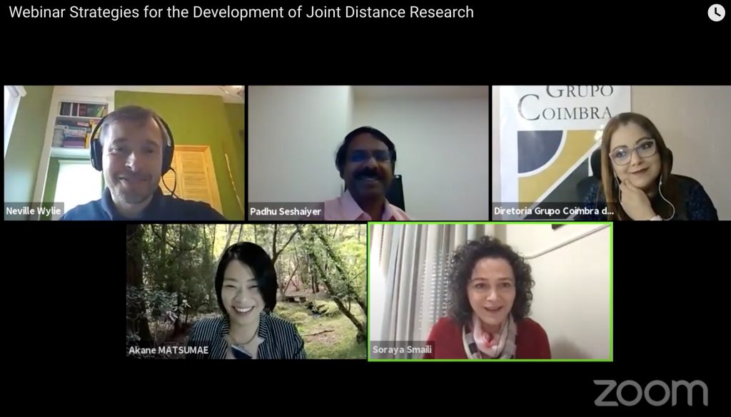 昨年度に続きCoimbra Group国際セミナーでの招待講演の機会をいただき、UNIFESPサンパウロ連邦大学Soraya Smaili学長によるStrategies for the Development of Joint Distance Researchをテーマとしたセッションにて、Dr. Padmanabhan Seshaiyer (George Mason University, USA)とDr. Neville Wylie (University of Stirling, UK)とパネルディスカッションさせていただきました。